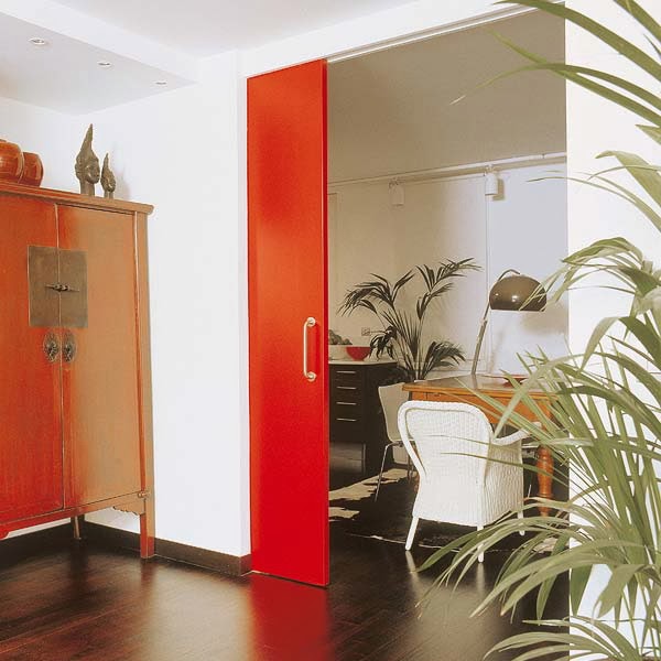 See how harmoniously sliding doors can fit into the European classics. Here you select the usual door panel, used for swinging doors, but here it is used as sliding.